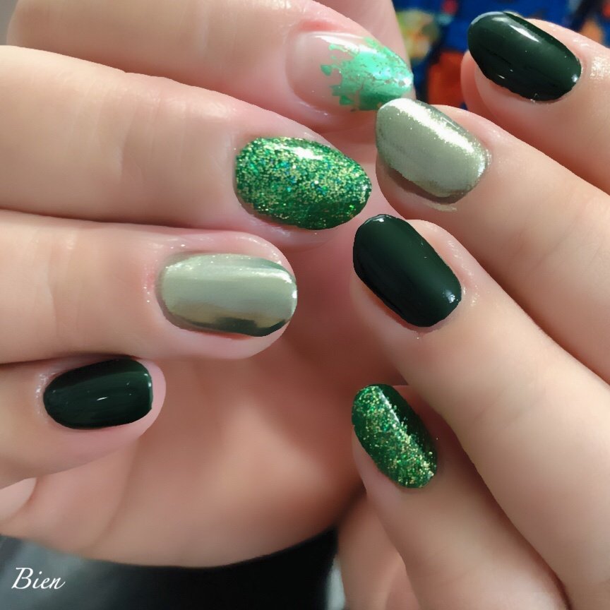緑ネイルデザインまとめ 黄緑 深緑 青緑 モスグリーンなどカラバリ豊富な緑のマニキュア ネイルデザイン集 美的 Com